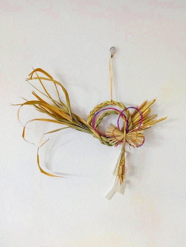 # 開運としあわせのオーナメント「オーナメント 真菰 精麻 御守り」 自然の力を感じるオーナメントです。 この「オーナメント 真菰 精麻 御守り」は、厳選された真菰と精麻を使用し、しめ飾りと水引の美しいデザインが際立っています。真菰の持つ豊かなエネルギーと、精麻の強力な力が融合し、あなたの運気を向上させ、しあわせを呼び込むサポートを提供します。 この御守りは、開運やしあわせを望む方に最適です。家庭や職場、様々な人間関係において、あなたを支え、心の安らぎをもたらしてくれるでしょう。真菰のエネルギーが心を豊かにし、精麻が空間を整える大切な役割を果たします。 さらに、しめ飾りは神聖な空間を演出し、強力な魔除けとなります。水引は結びつきを強め、願いを叶える象徴として、多くの人に愛されています。この美しいオーナメントは、インテリアとしても華やかで、あなたの生活にエネルギーをもたらすことでしょう。 お正月にはしめ飾りとして飾り、その後は玄関の内側やお部屋に飾って良い氣を呼び込む境界を設けましょう。 自分用はもちろん、大切な家族や友人への贈り物としても最適です。自然のエネルギーと伝統的なデザインが調和した「オーナメント 真菰 精麻 御守り」を、ぜひご家庭に迎えて、その魅力を実感していただきたい逸品です。 [お手入れ方法] 直射日光を避け、湿気の少ない場所で保管してください。 内容量 1個 長さ 35センチ、幅 30センチ 真菰、精麻、しめ飾り、水引、開運・しあわせ効果