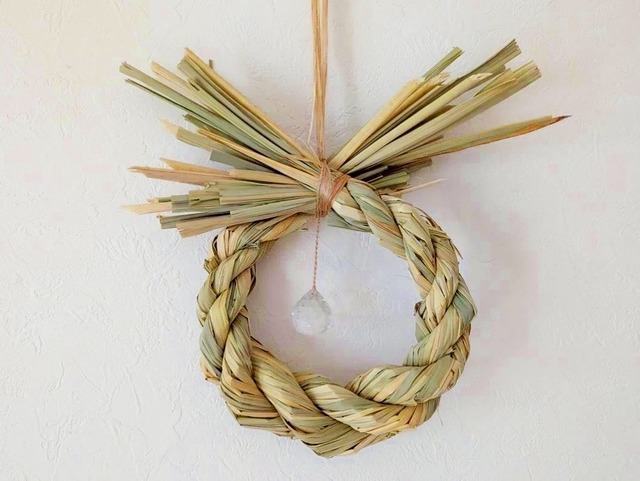 # 開運としあわせのオーナメント「オーナメント 真菰 精麻 御守り」 豊かな運気を呼び込む力を持ったオーナメントです。 この「オーナメント 真菰 精麻 御守り」は、厳選された真菰と精麻を使用し、しめ飾りと叶結び、水引の美しいデザインが特徴です。真菰の持つ自然の力と、精麻のエネルギーが融合し、あなたの運気を向上させ、しあわせを呼び込むお手伝いをします。 この御守りは、開運やしあわせを望む方に最適で、家庭や職場、さまざまな人間関係で力強い支えとなるでしょう。真菰のエネルギーがあなたの心を豊かにし、精麻が空間を整えるパートナーとなります。 さらに、しめ飾りは神聖さの象徴として、魔除けの役割も果たします。叶結びは願いを実現する力をもたらし、水引があなたの大切な結びつきを強める助けとなることでしょう。この美しいオーナメントは、インテリアとしても華やかさを加え、日常生活に活力を与えてくれるはずです。 お正月を彩るしめ飾りとして飾った後には、玄関内やお部屋において、結界を作り、悪い気を寄せ付けない空間を整えます。 自分用はもちろん、愛する家族や友人への贈り物としても最適です。自然のエネルギーと伝統的なデザインが調和した「オーナメント 真菰 精麻 御守り」を、ぜひ手に取ってその魅力を感じていただきたい逸品です。 [お手入れ方法] 直射日光を避け、湿気の少ない場所で保管してください。 内容量 1個 長さ 35センチ、幅 35センチ 真菰、精麻、しめ飾り、叶結び、水引、開運・しあわせ効果