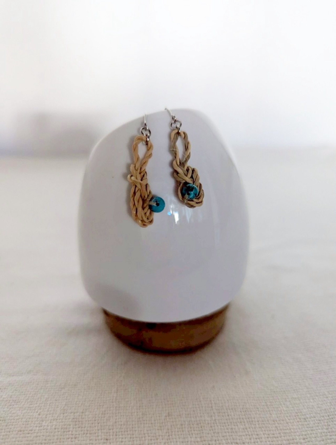 この「真菰 精麻 御守り ピアス」は、選び抜かれた真菰と精麻、さらにターコイズを使用し、茗荷結びの素敵なデザインが施されています。真菰の持つ力強いエネルギーと精麻の柔和さが組み合わさり、あなたの運気を上げ、魔を寄せ付けない独自のパワーを与えます。