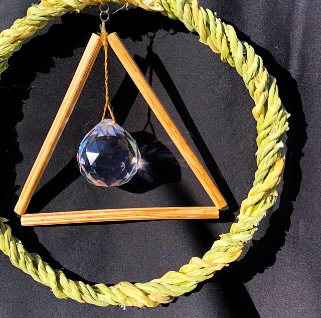 サンキャッチャー 真菰 精麻 麻ガラ 浄化 太陽 三日月 御守り 開運 しあわせ