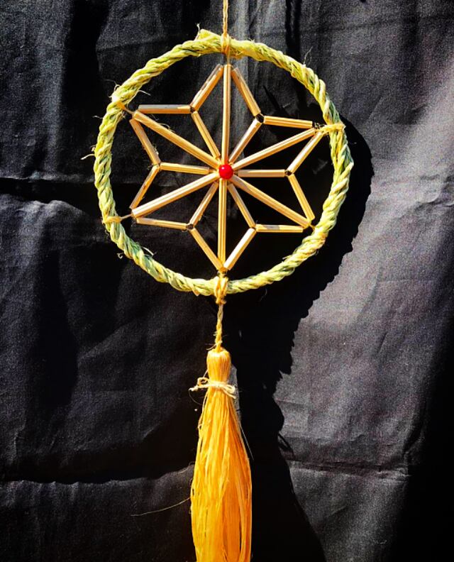 真菰、精麻、麻ガラと赤珊瑚を使いました。