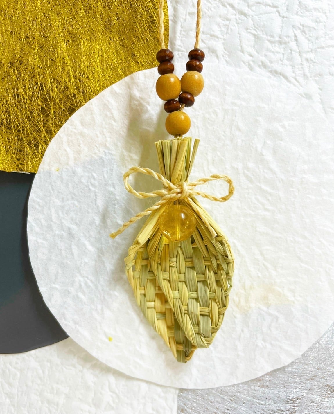 ペンダント真菰 精麻 御守り開運 しあわせ葉っぱ水晶