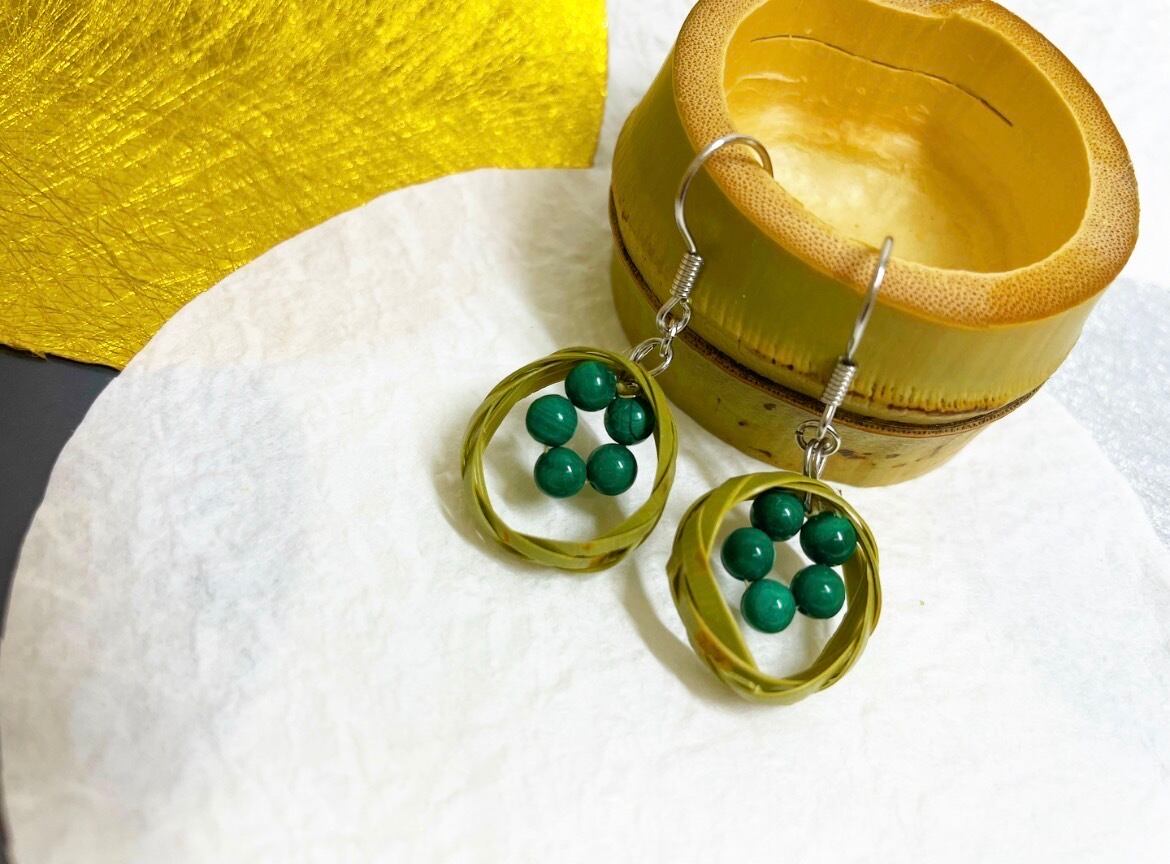 ピアス 真菰 精麻 御守り 開運 しあわせ竹マラカイト
